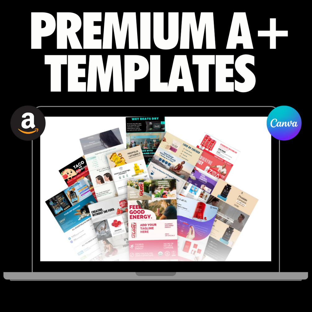 These are 50 of the best Premium A+ pages that I've seen on Amazon used by million dollar brands. My team copied them into Canva so you can easily edit them for your own use.